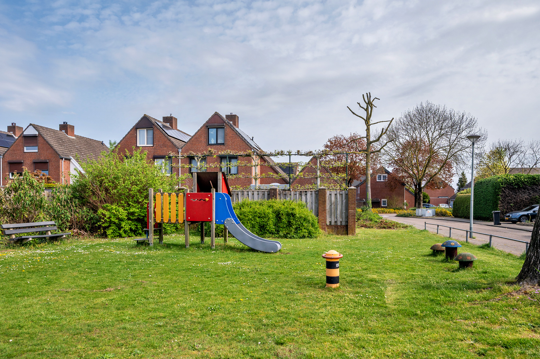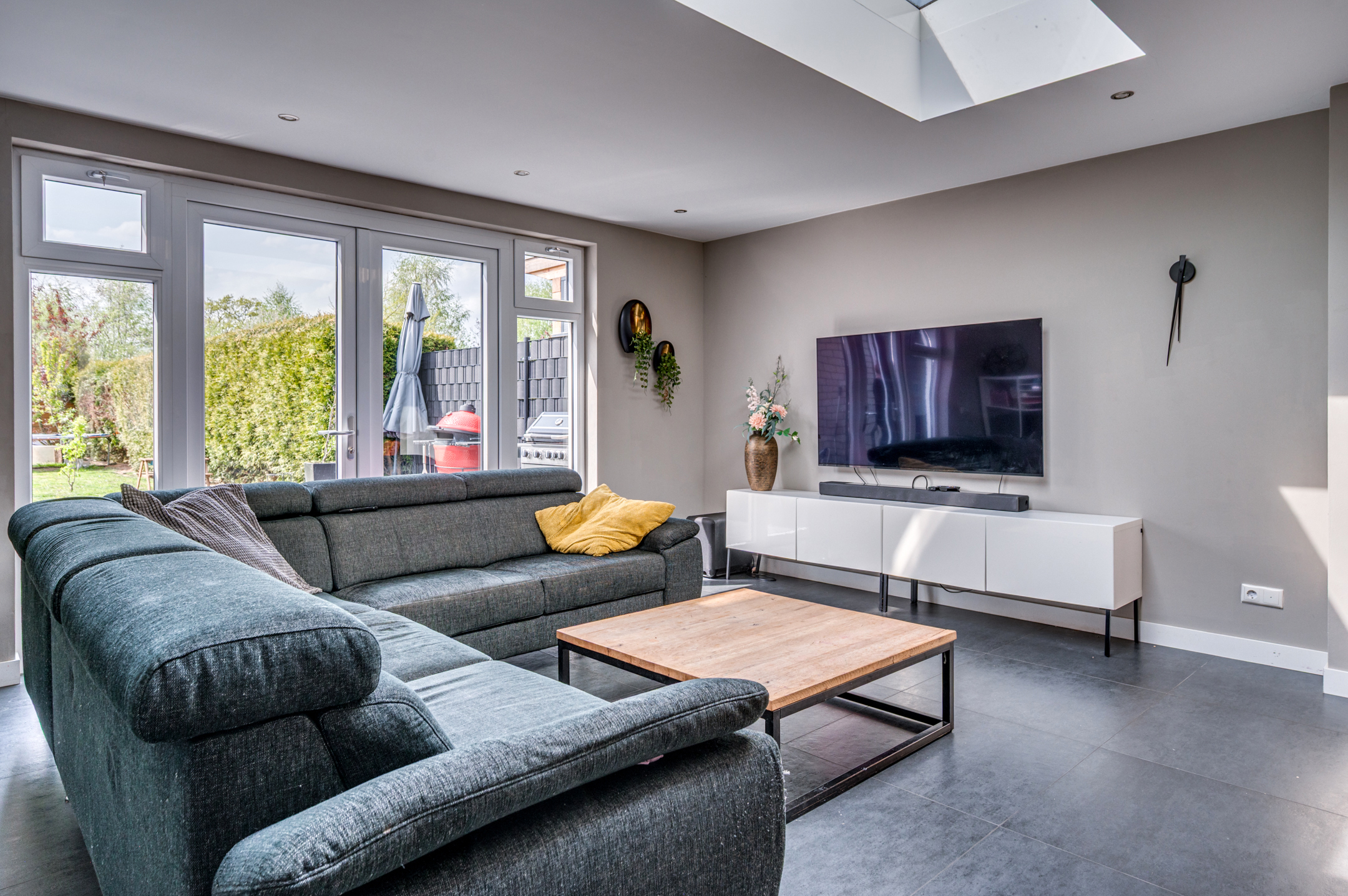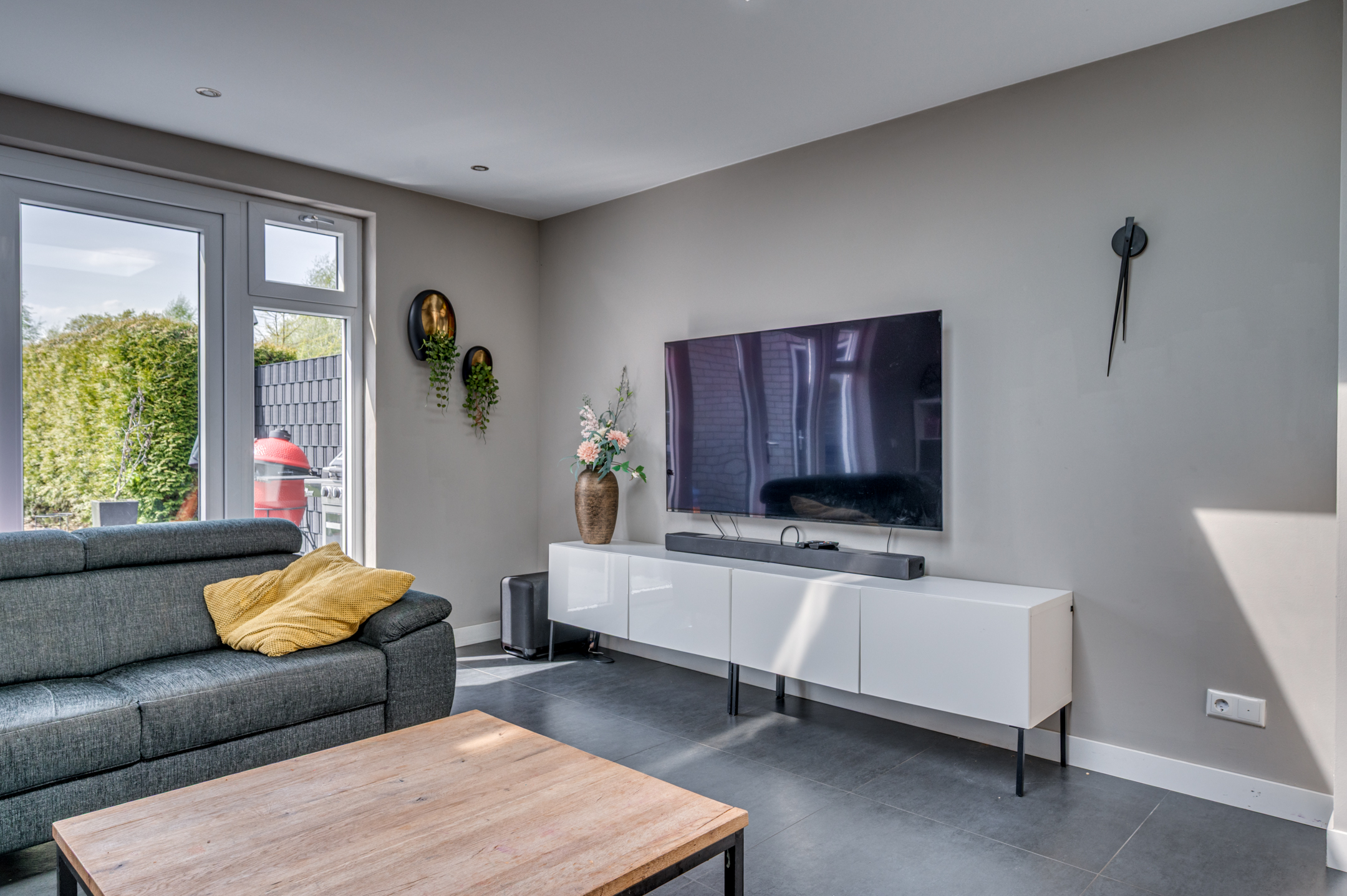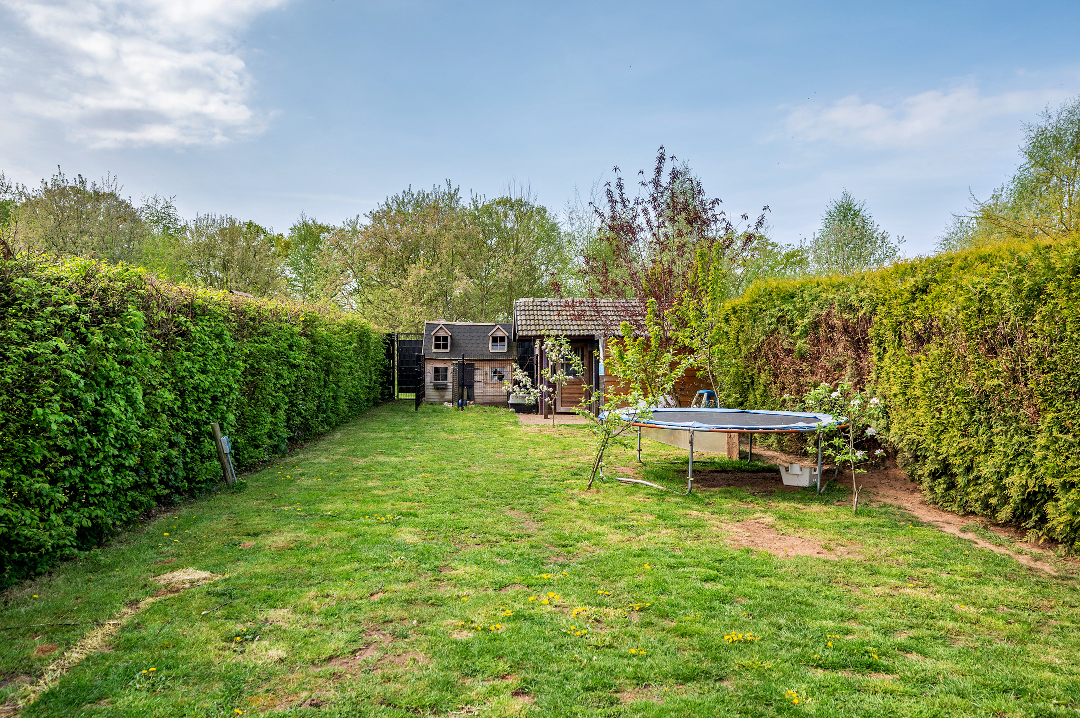 De onderhoudsvriendelijke achtertuin geniet veel privacy en is op het zuidwesten gelegen. Aan de achterzijde is er toegang tot de buitenberging. Aan de voorzijde is het mogelijk om 2 auto's op de eigen oprit te plaatsen.