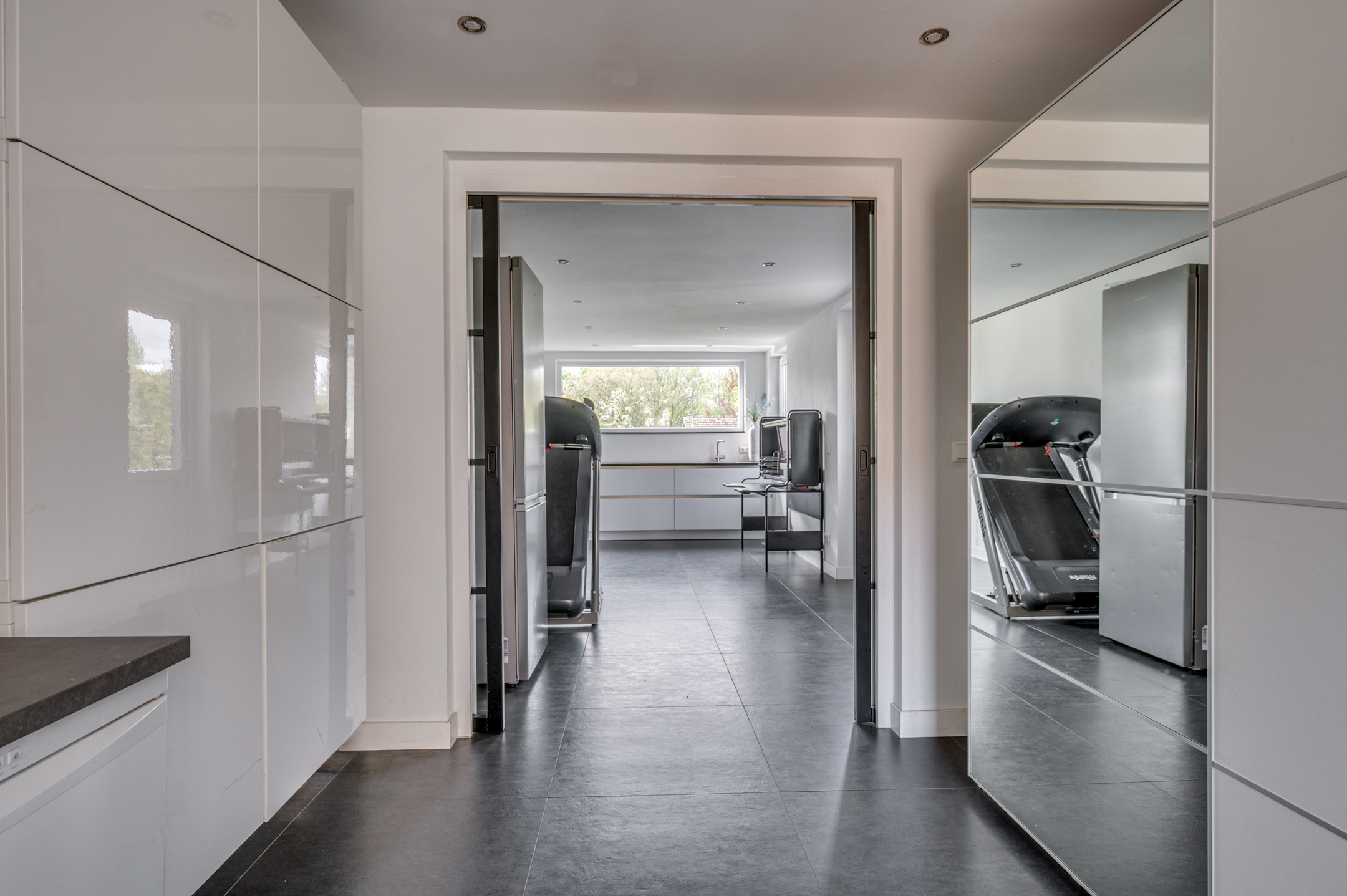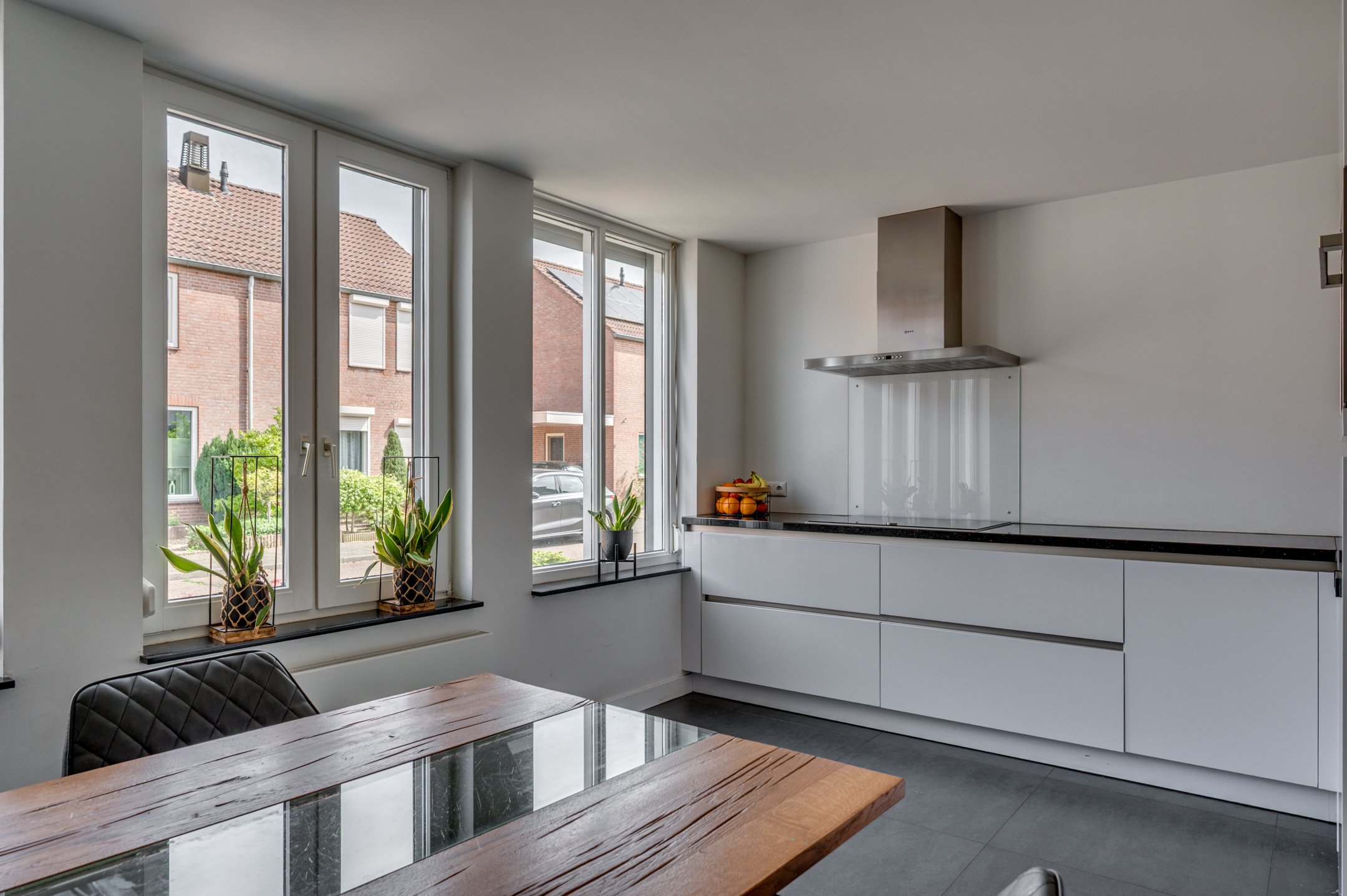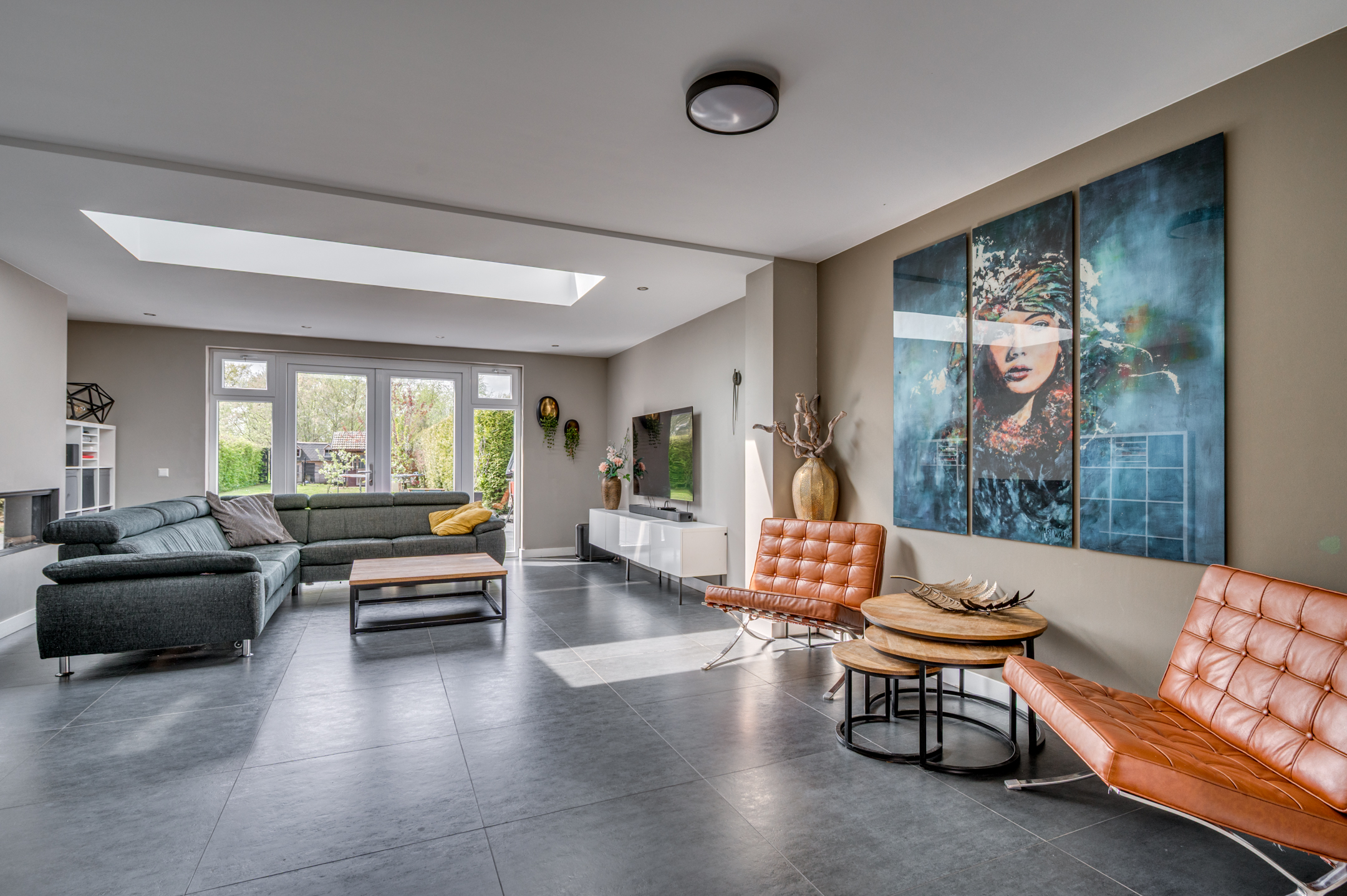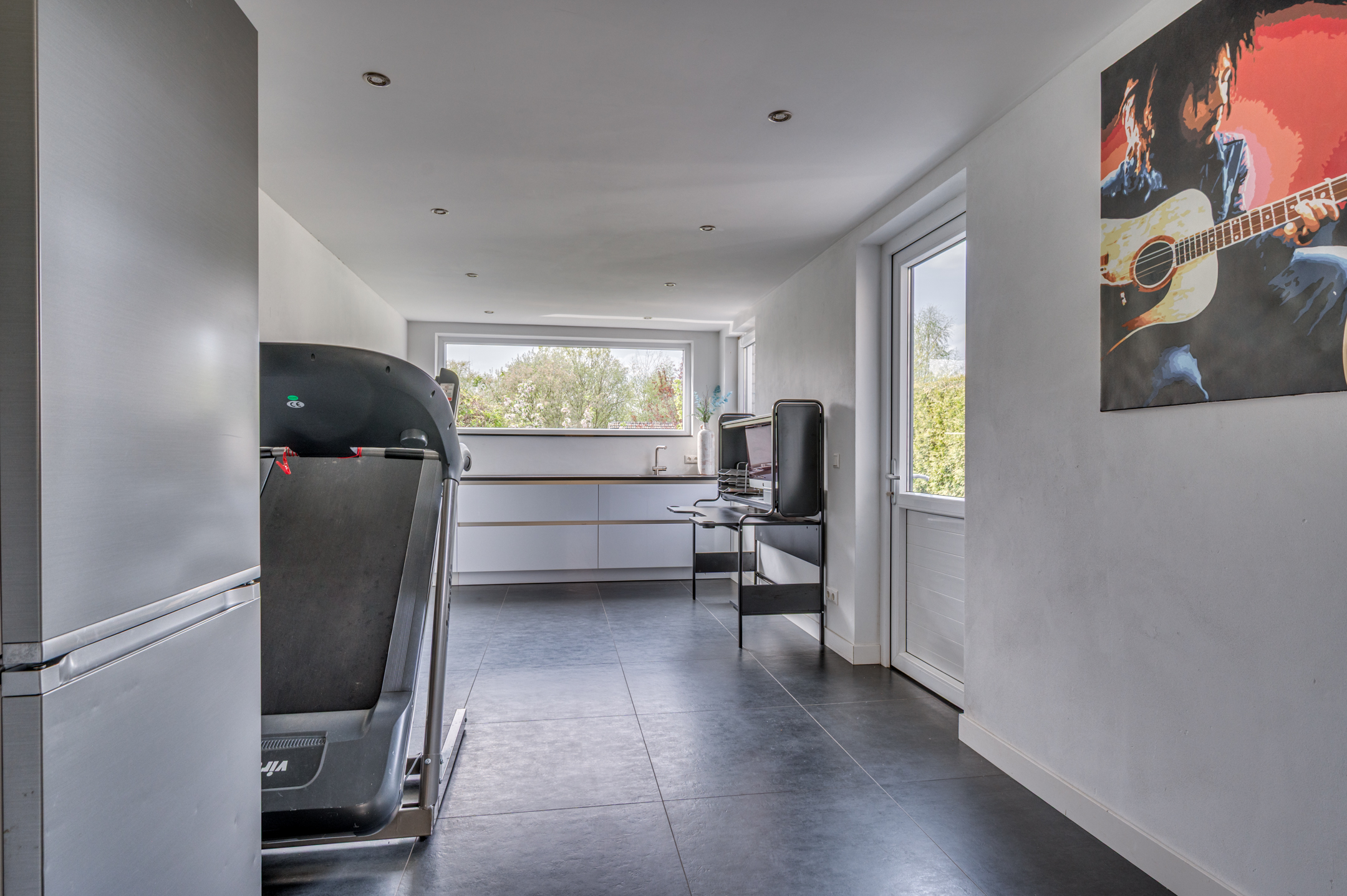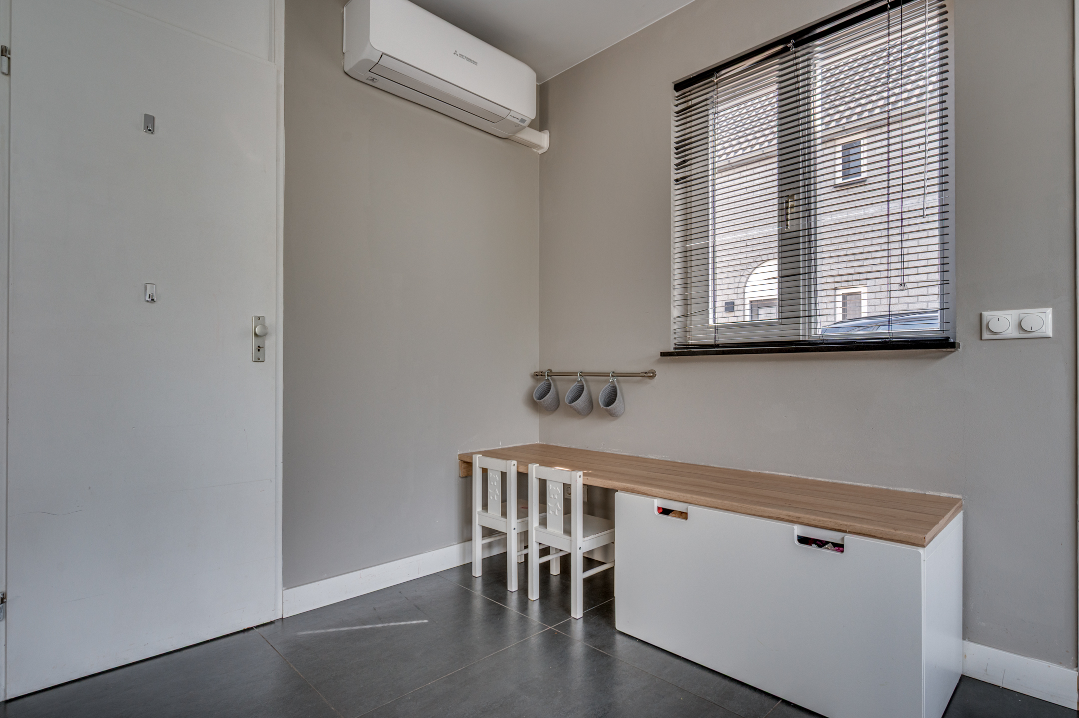 Via de eigen oprit is de entree van de woning te bereiken. De entree/hal geeft toegang tot de separate toiletruimte, meterkast en woonkamer. De separate toiletruimte is deels betegeld en voorzien van een zwevend toilet, fonteintje en buitenraam. Middels een loopdeur is de zeer ruime woonkamer te bereiken. De woonkamer is ingedeeld in een eetkamer met open keuken aan de voorzijde en ruime woonkamer aan de achterzijde. De keuken is in 2018 vernieuwd en voorzien van een inductiekookplaat, afzuigkap, vaatwasmachine, combi-oven/magnetron, spoelbak, koelkast en zeer veel opbergruimte. Vanuit de zithoek is er middels 2 openslaande tuindeuren toegang tot de tuin. De woonkamer geeft tevens toegang tot de wasruimte en riante bijruimte. De gehele begane grond is voorzien van vloerverwarming en tevens is er een airco aanwezig.