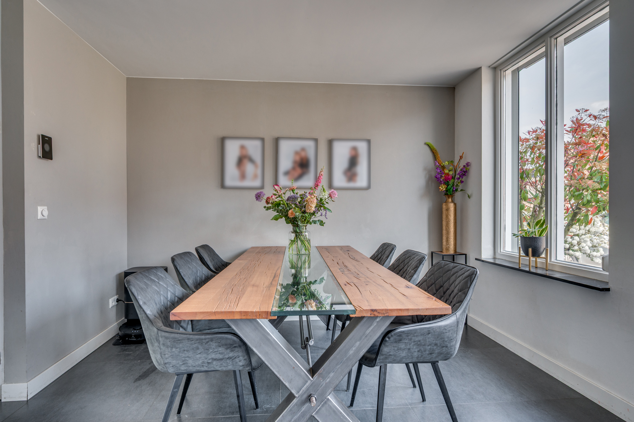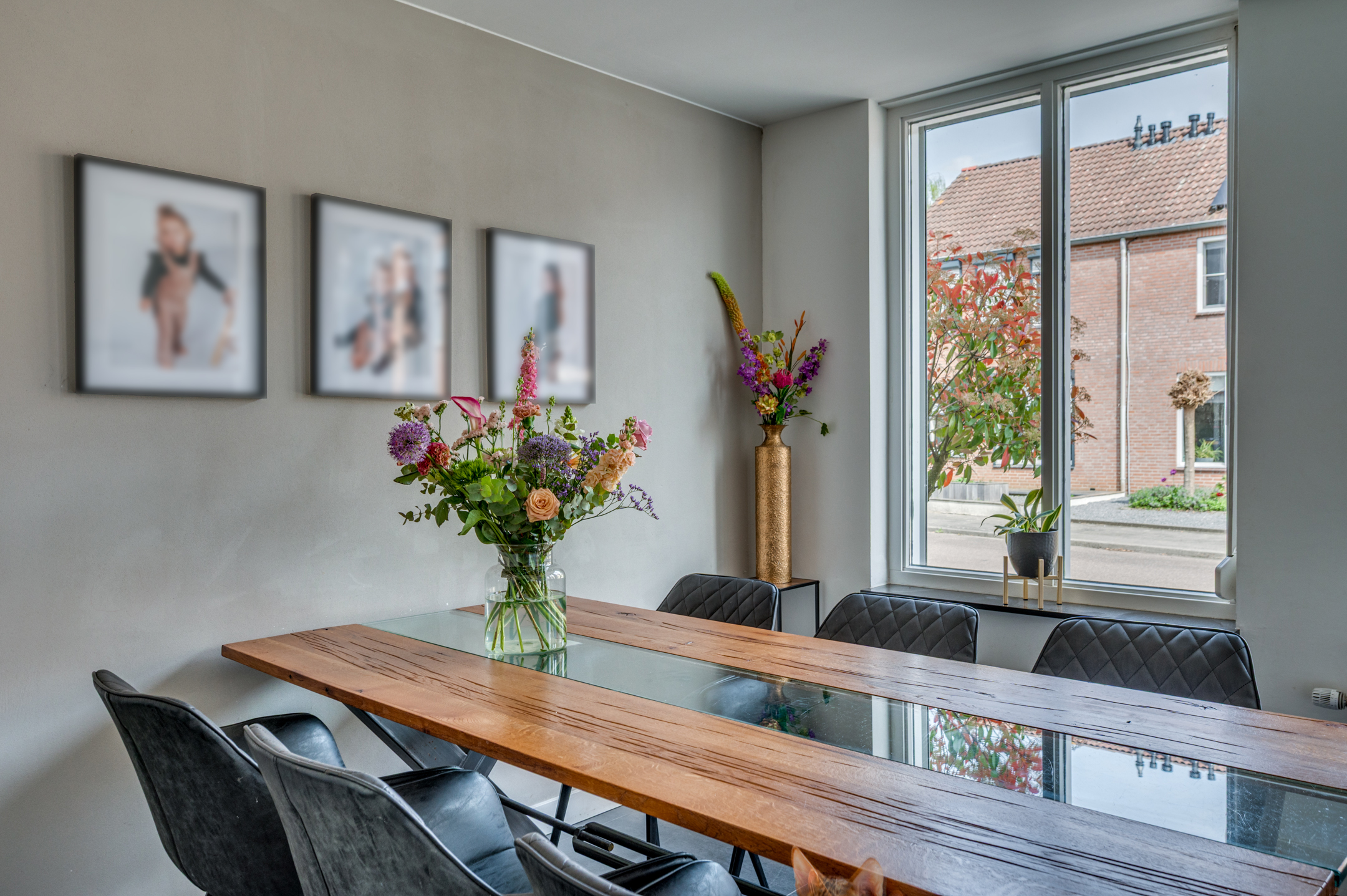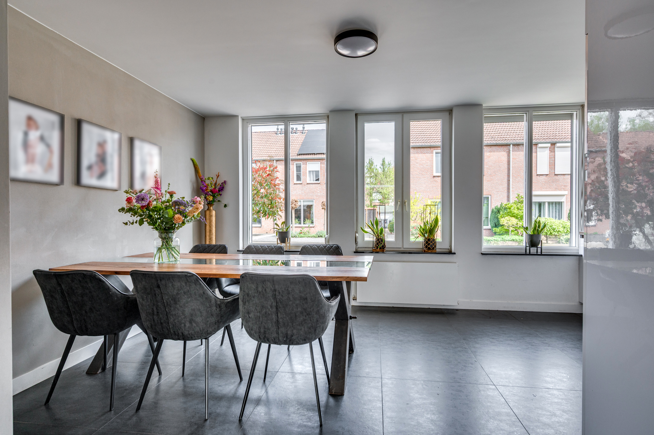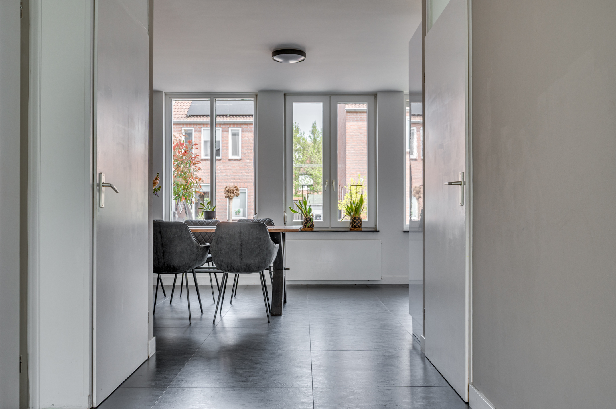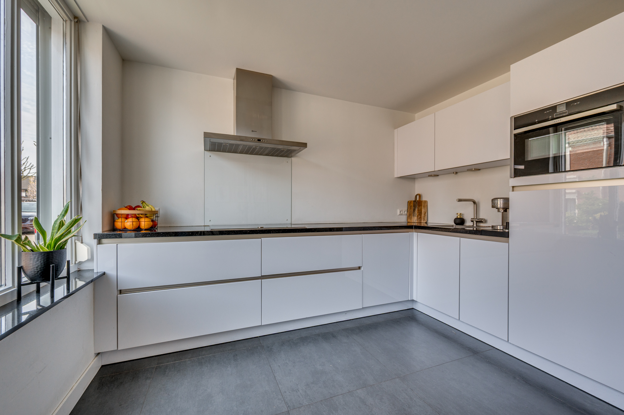 Via de eigen oprit is de entree van de woning te bereiken. De entree/hal geeft toegang tot de separate toiletruimte, meterkast en woonkamer. De separate toiletruimte is deels betegeld en voorzien van een zwevend toilet, fonteintje en buitenraam. Middels een loopdeur is de zeer ruime woonkamer te bereiken. De woonkamer is ingedeeld in een eetkamer met open keuken aan de voorzijde en ruime woonkamer aan de achterzijde. De keuken is in 2018 vernieuwd en voorzien van een inductiekookplaat, afzuigkap, vaatwasmachine, combi-oven/magnetron, spoelbak, koelkast en zeer veel opbergruimte. Vanuit de zithoek is er middels 2 openslaande tuindeuren toegang tot de tuin. De woonkamer geeft tevens toegang tot de wasruimte en riante bijruimte. De gehele begane grond is voorzien van vloerverwarming en tevens is er een airco aanwezig.