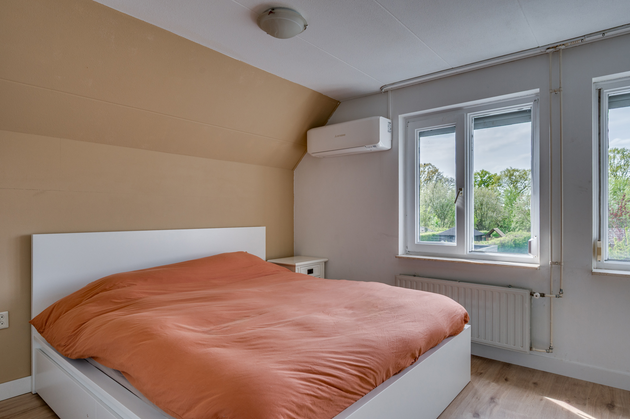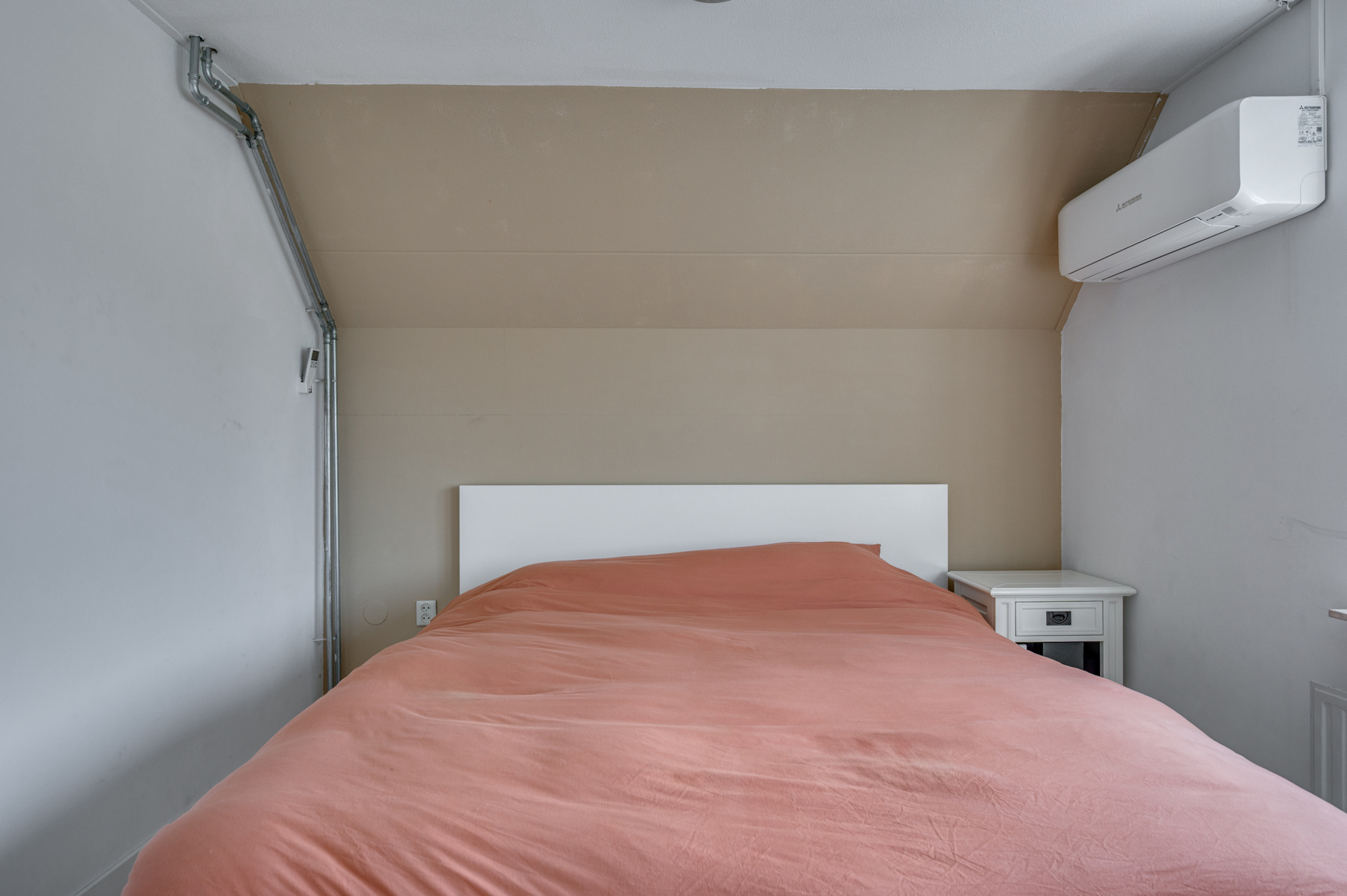 De overloop geeft toegang tot 3 slaapkamers, badkamer en een vlizotrap. De slaapkamers zijn ruim van opzet en allen voorzien van rolluiken. De masterbedroom welke aan de achterzijde is gelegen beschikt tevens over een inbouwkast en airco. De badkamer is geheel betegeld en voorzien van een zwevend toilet, ligbad met douchefaciliteit, wastafel met meubel, verwarming en buitenraam.