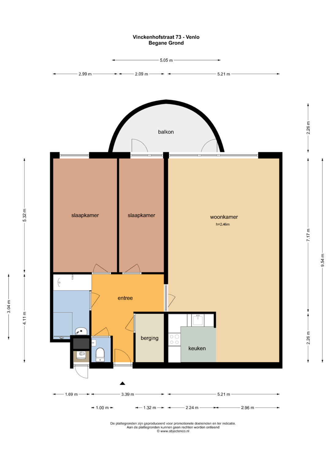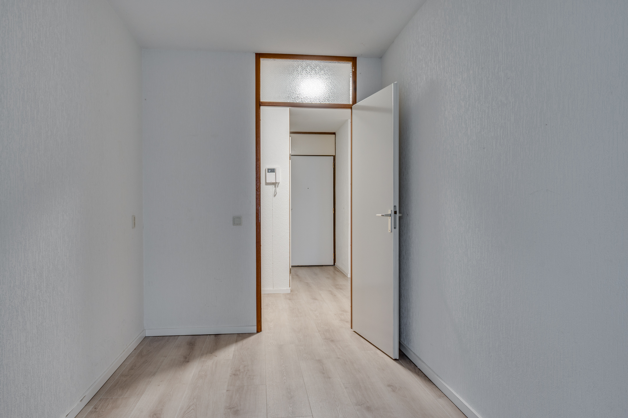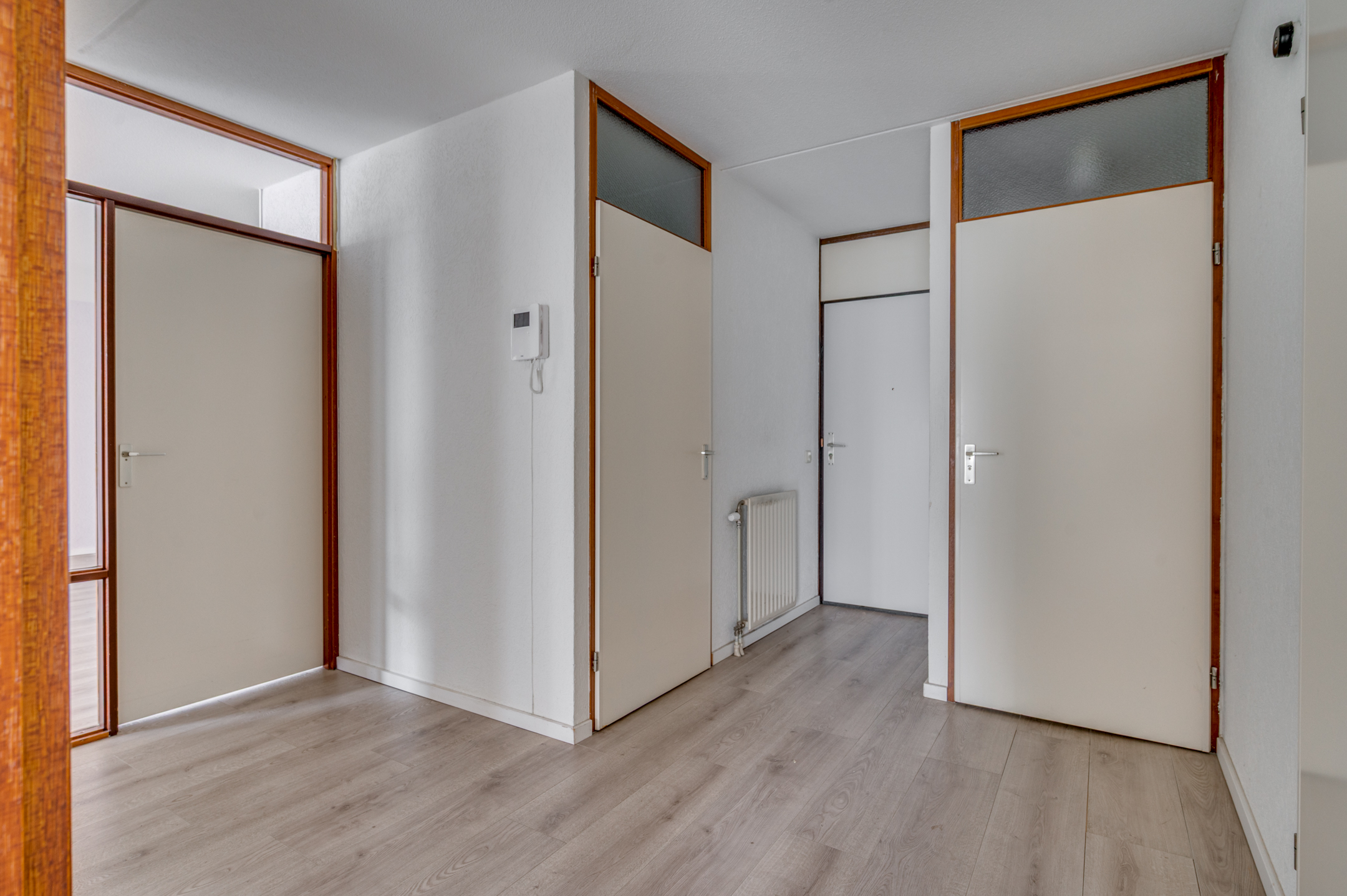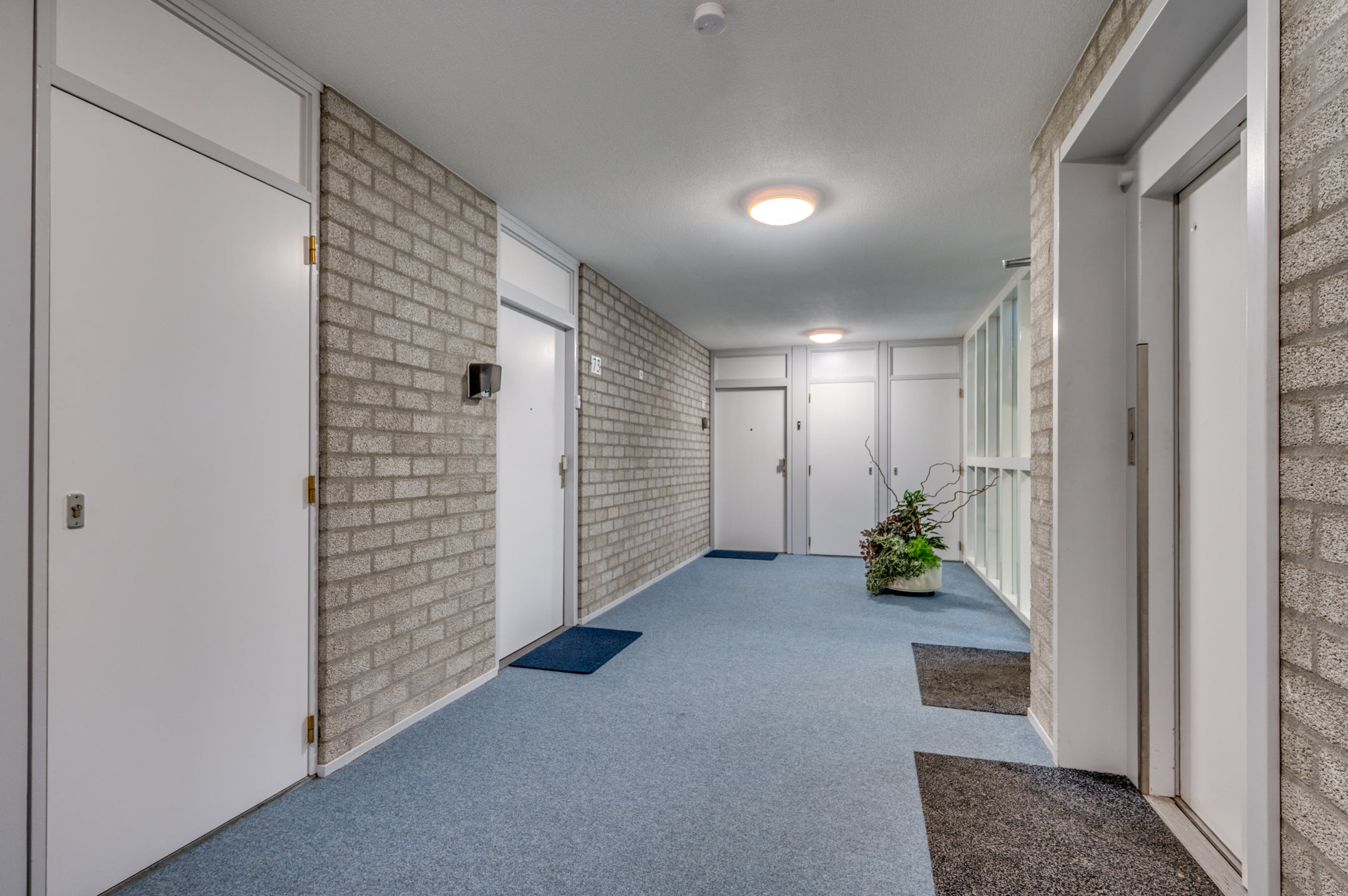 Aan de buitenzijde van het complex bevindt zich een bellentableau en de brievenbussen. De centrale ingang geeft toegang tot de privé bergingen, de lift en het trappenhuis. Op de begane grond bevindt zich de inpandige entree van het appartement. De ruime hal geeft toegang tot de inpandige berging waar tevens de witgoedaansluitingen te vinden zijn, toiletruimte, badkamer, 2 slaapkamers en woonkamer. De geheel betegelde toiletruimte is voorzien van een toilet, mechanische ventilatie en fonteintje. De geheel betegelde badkamer is voorzien van een ligbad, inloopdouche, wastafel en mechanische ventilatie. Aan het einde van de hal zijn de 2 slaapkamers gelegen. De slaapkamers zijn ca. 16m² en 11m² groot. De slaapkamer van ca. 11m² heeft tevens toegang tot het balkon. De ruime woonkamer met semi- open keuken is ca. 50m² groot en geeft middels een loopdeur toegang tot het balkon. De keuken is verdekt opgesteld en beschikt over een inductiekookplaat, afzuigkap, oven, spoelbak, vaatwasmachine en veel opbergruimte. Het gehele appartement beschikt over een laminaatvloer. Verder is er een zonnescherm aanwezig