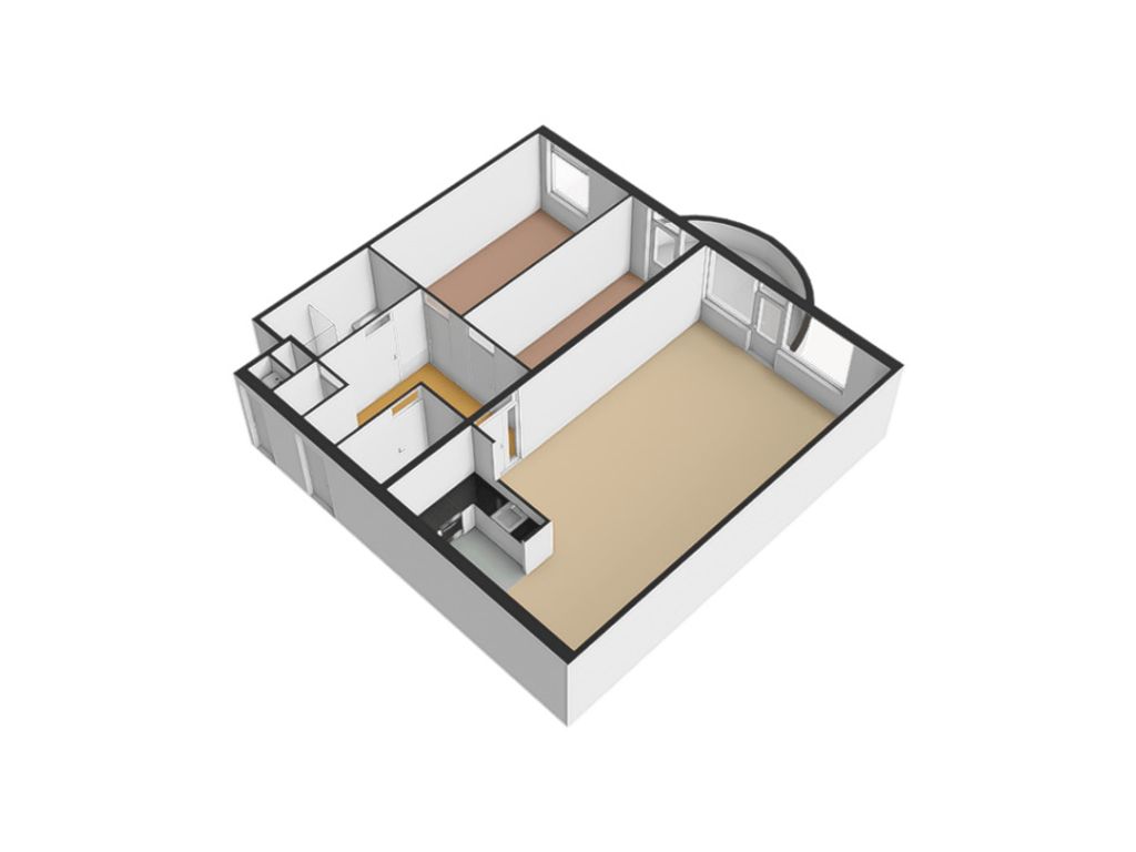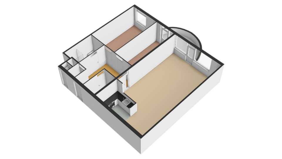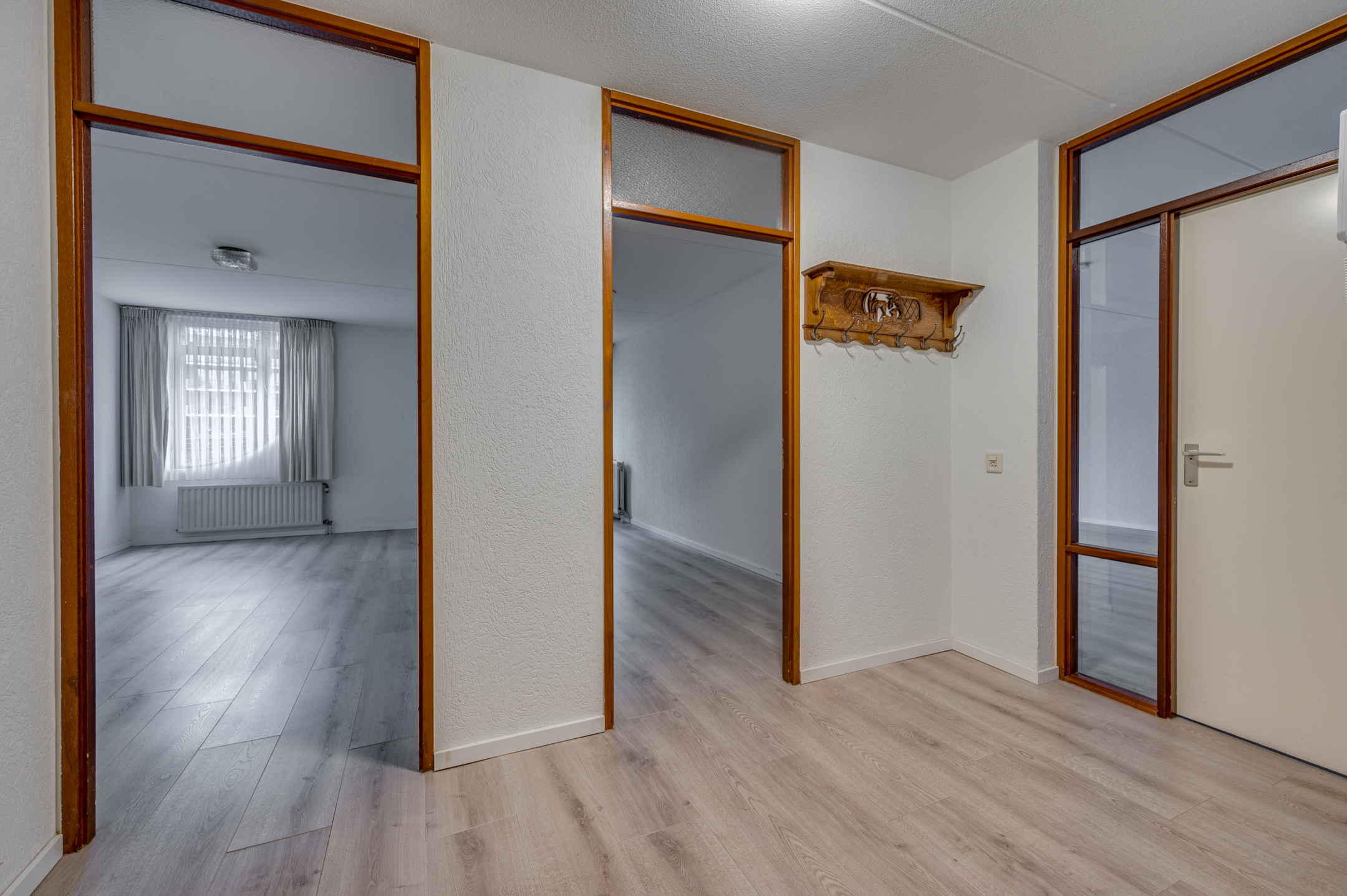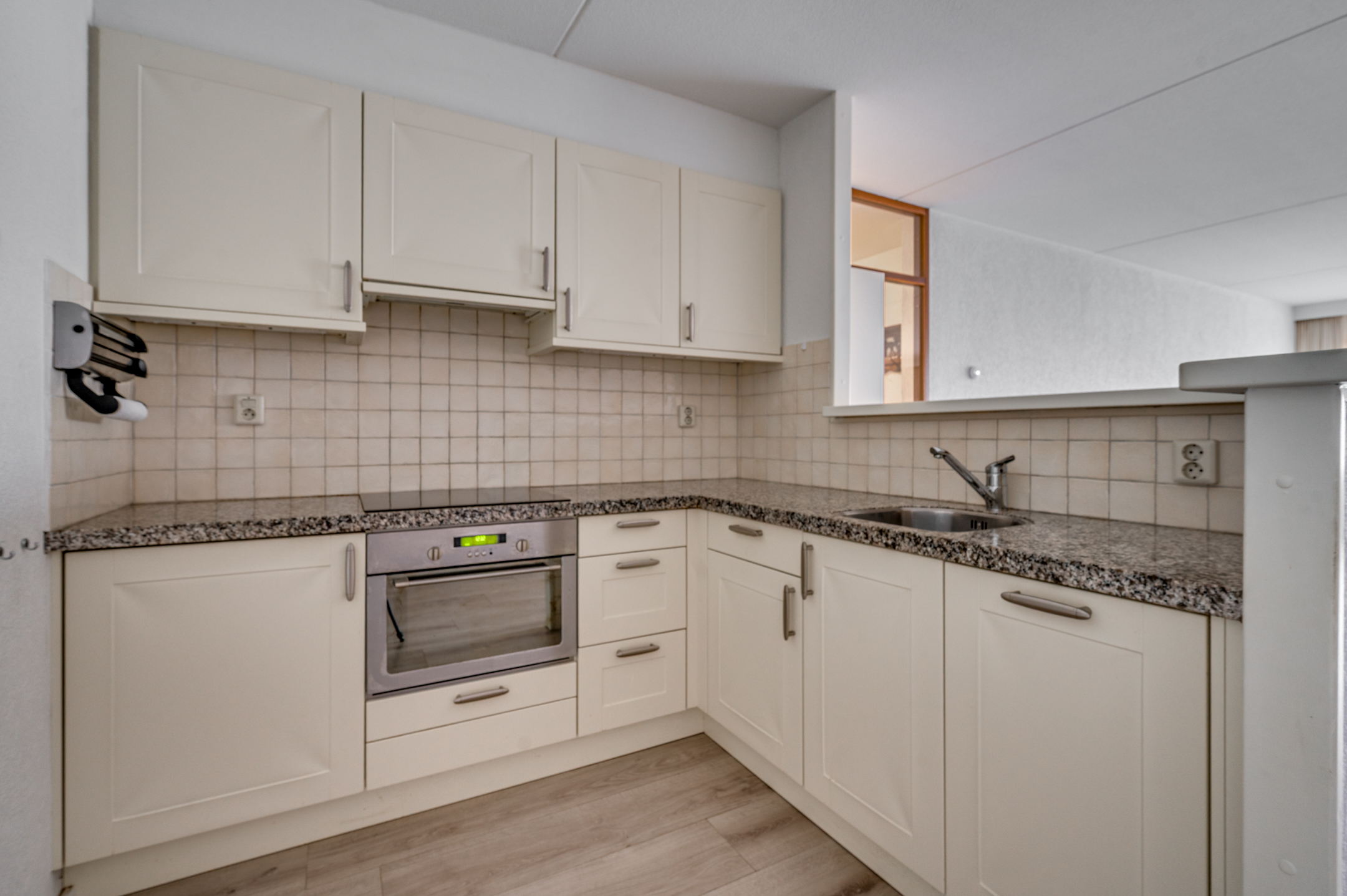 Aan de buitenzijde van het complex bevindt zich een bellentableau en de brievenbussen. De centrale ingang geeft toegang tot de privé bergingen, de lift en het trappenhuis. Op de begane grond bevindt zich de inpandige entree van het appartement. De ruime hal geeft toegang tot de inpandige berging waar tevens de witgoedaansluitingen te vinden zijn, toiletruimte, badkamer, 2 slaapkamers en woonkamer. De geheel betegelde toiletruimte is voorzien van een toilet, mechanische ventilatie en fonteintje. De geheel betegelde badkamer is voorzien van een ligbad, inloopdouche, wastafel en mechanische ventilatie. Aan het einde van de hal zijn de 2 slaapkamers gelegen. De slaapkamers zijn ca. 16m² en 11m² groot. De slaapkamer van ca. 11m² heeft tevens toegang tot het balkon. De ruime woonkamer met semi- open keuken is ca. 50m² groot en geeft middels een loopdeur toegang tot het balkon. De keuken is verdekt opgesteld en beschikt over een inductiekookplaat, afzuigkap, oven, spoelbak, vaatwasmachine en veel opbergruimte. Het gehele appartement beschikt over een laminaatvloer. Verder is er een zonnescherm aanwezig