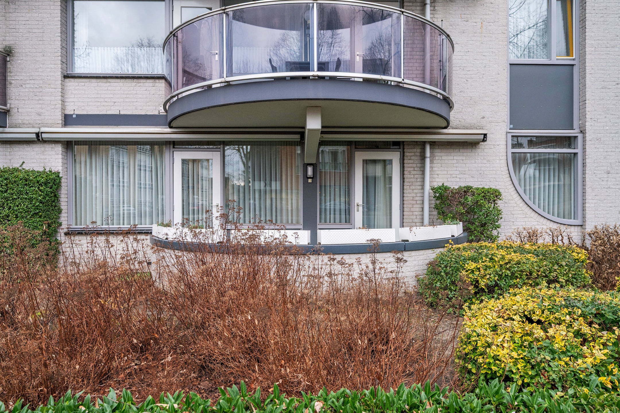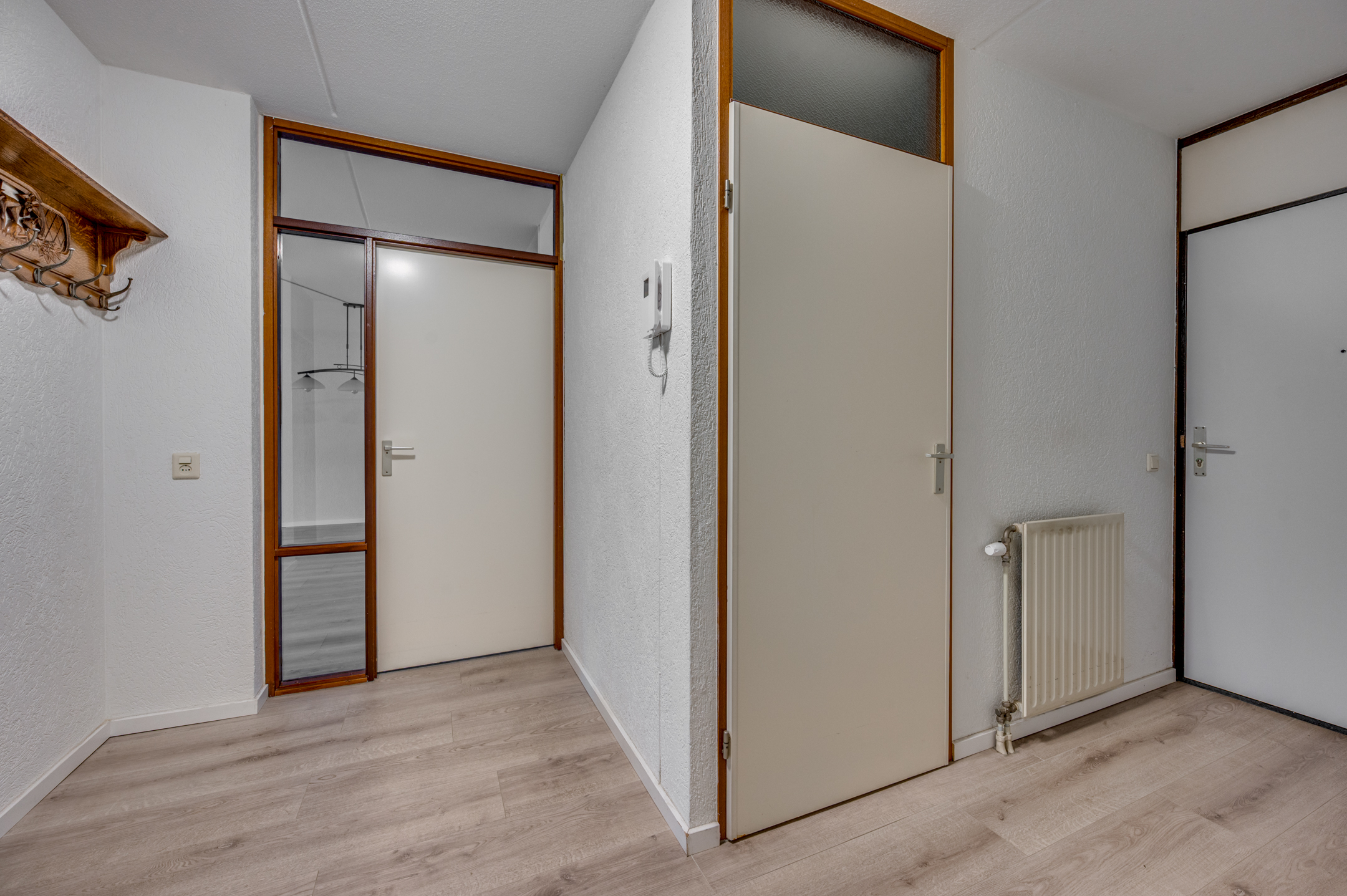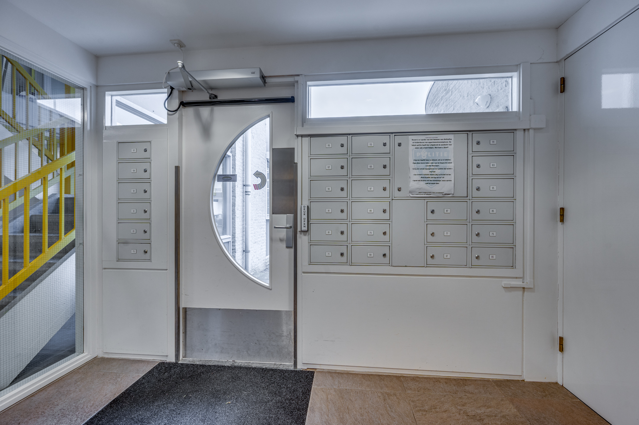 De meterkast en de C.V. opstelling bevinden zich naast de voordeur aan de buitenzijde. Deze ruimte biedt tevens plek voor opslag van poetsspullen etc.