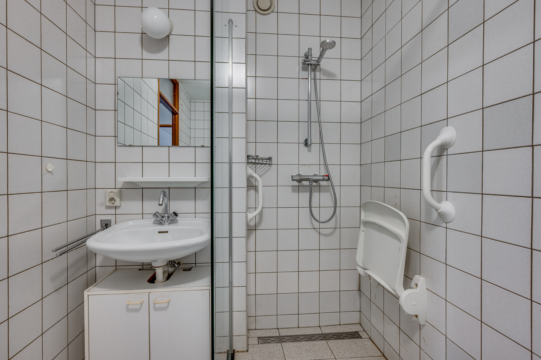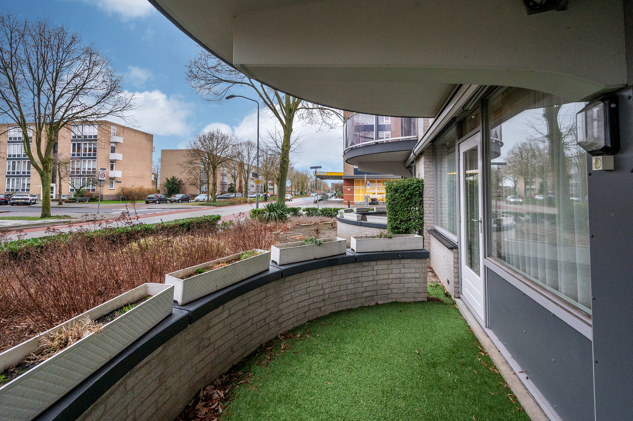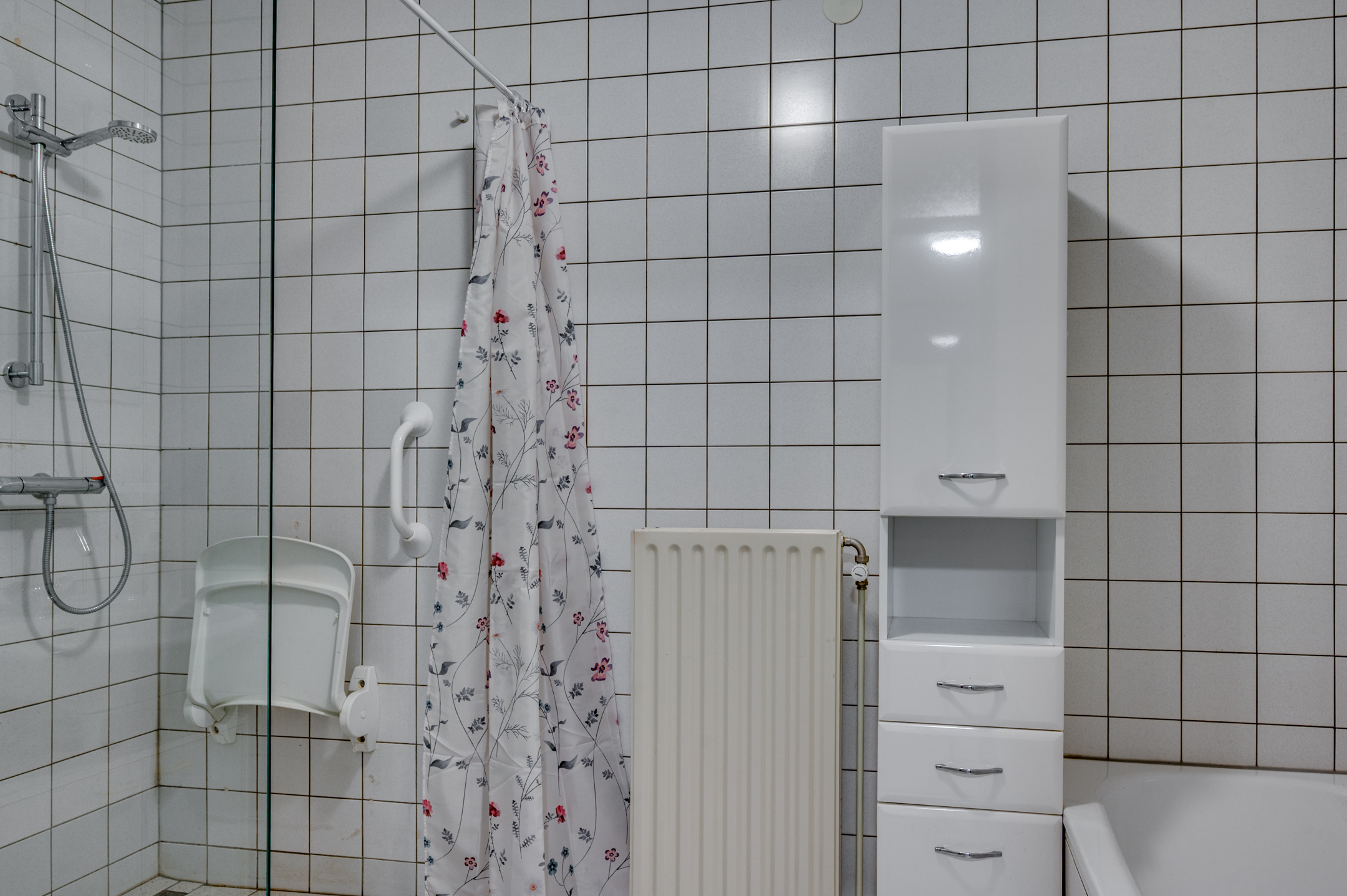 De meterkast en de C.V. opstelling bevinden zich naast de voordeur aan de buitenzijde. Deze ruimte biedt tevens plek voor opslag van poetsspullen etc.