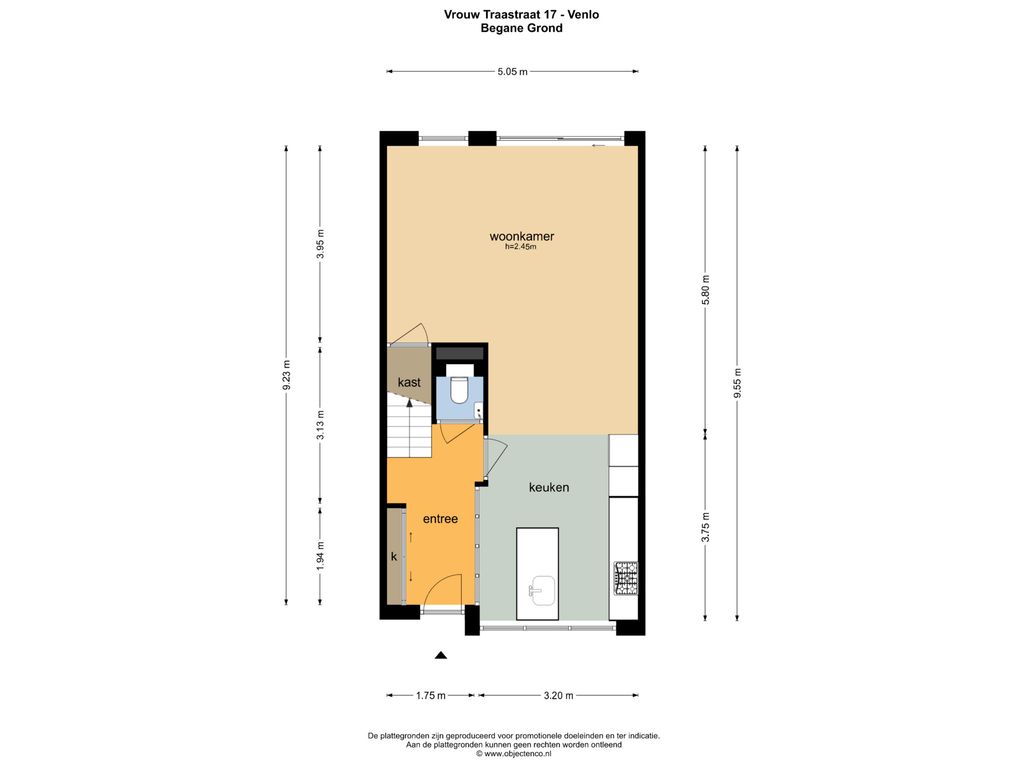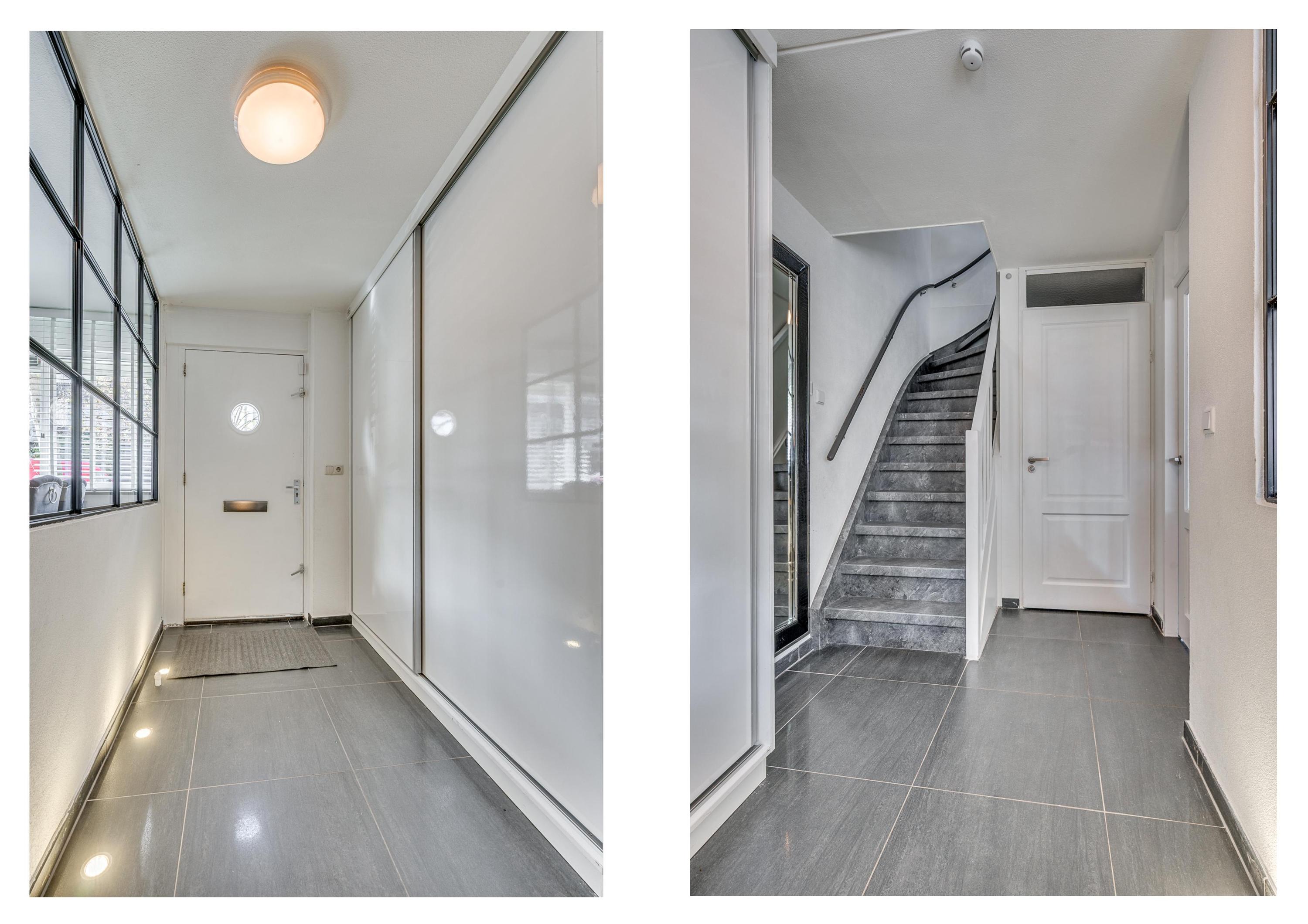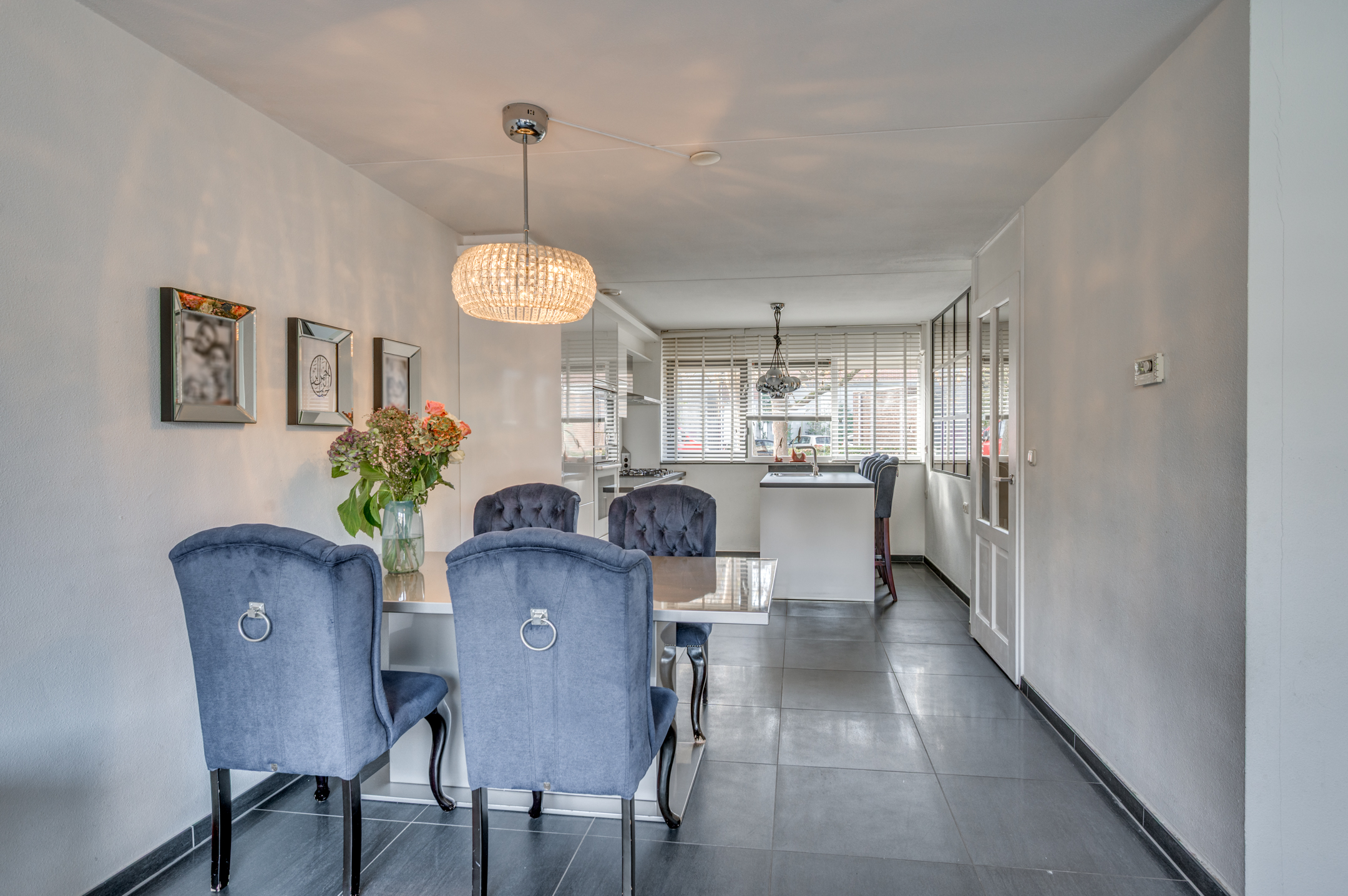 De entree/ hal geeft toegang tot de trapopgang naar de 1e verdieping, separate toiletruimte en de woonkamer. De geheel betegelde toiletruimte is voorzien van een zwevend toilet, fonteintje en mechanische ventilatie. Middels een loopdeur is de open keuken met woonkamer te betreden. De keuken is aan de voorzijde van de woning gelegen en is voorzien van een spoeleiland, 5-pits gasfornuis, afzuigkap, oven, magnetron, koelkast, diepvries en zeer veel opbergruimte. Aan de achterzijde is de woonkamer gelegen. Hier is een airco geplaatst en is er toegang tot de trapkast. Middels een schuifpui is de onderhoudsvriendelijke achtertuin te bereiken. De gehele begane grond is voorzien van een tegelvloer, verder zijn de woonkamer en de hal voorzien van vloerverwarming.