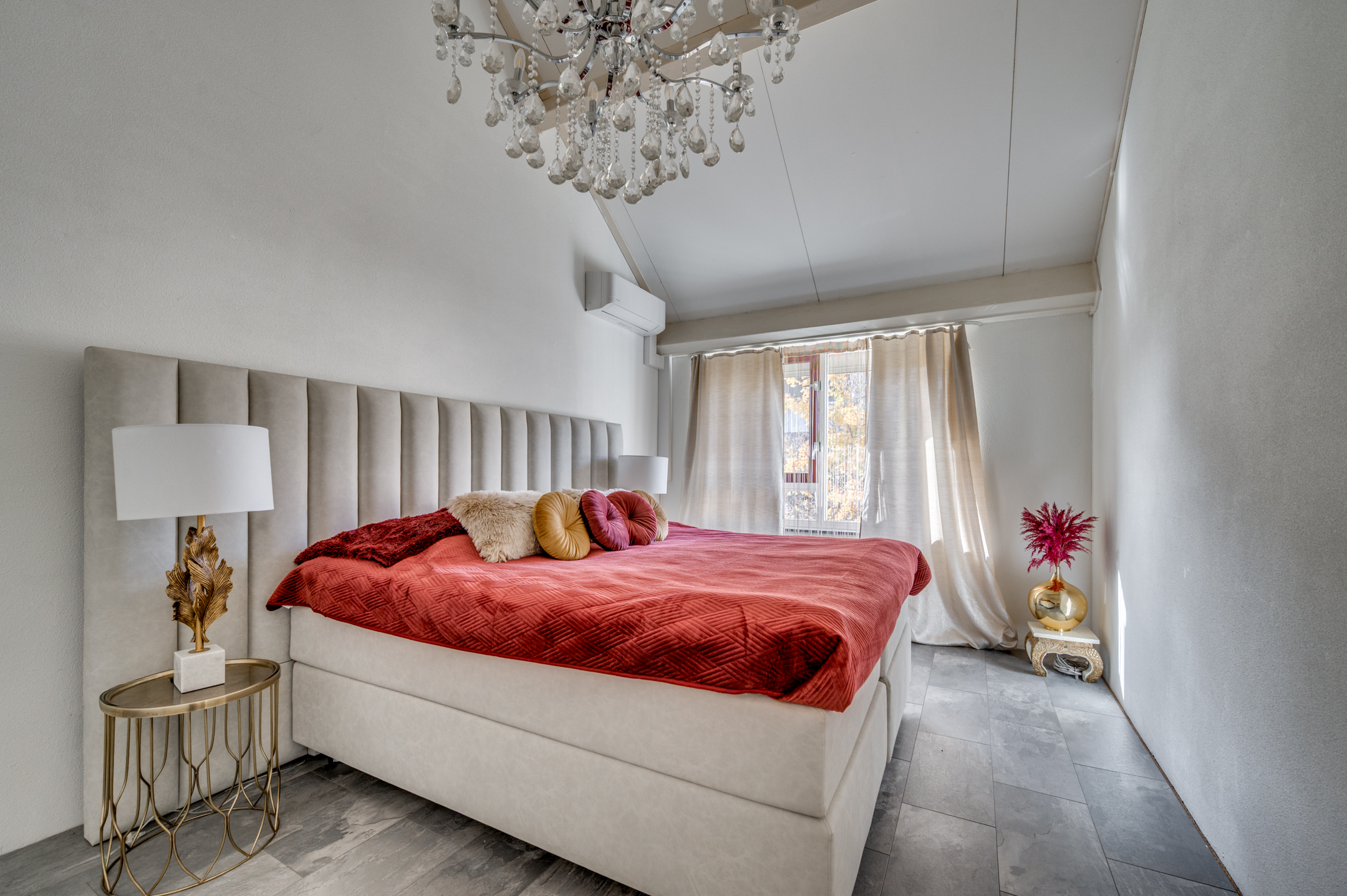 Middels een vaste trap is de overloop van de 2e verdieping te bereiken. De overloop geeft toegang tot de 4e en 5e slaapkamer. Op de overloop bevinden zich de witgoedaansluitingen en de combi CV-ketel (Nefit 2016, eigendom). De 2 ruime slaapkamers zijn voorzien van een laminaatvloer. De slaapkamer aan de voorzijde is verder voorzien van een airco.