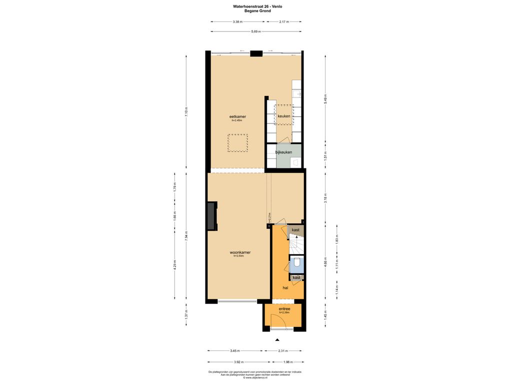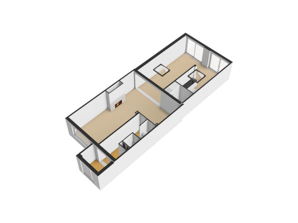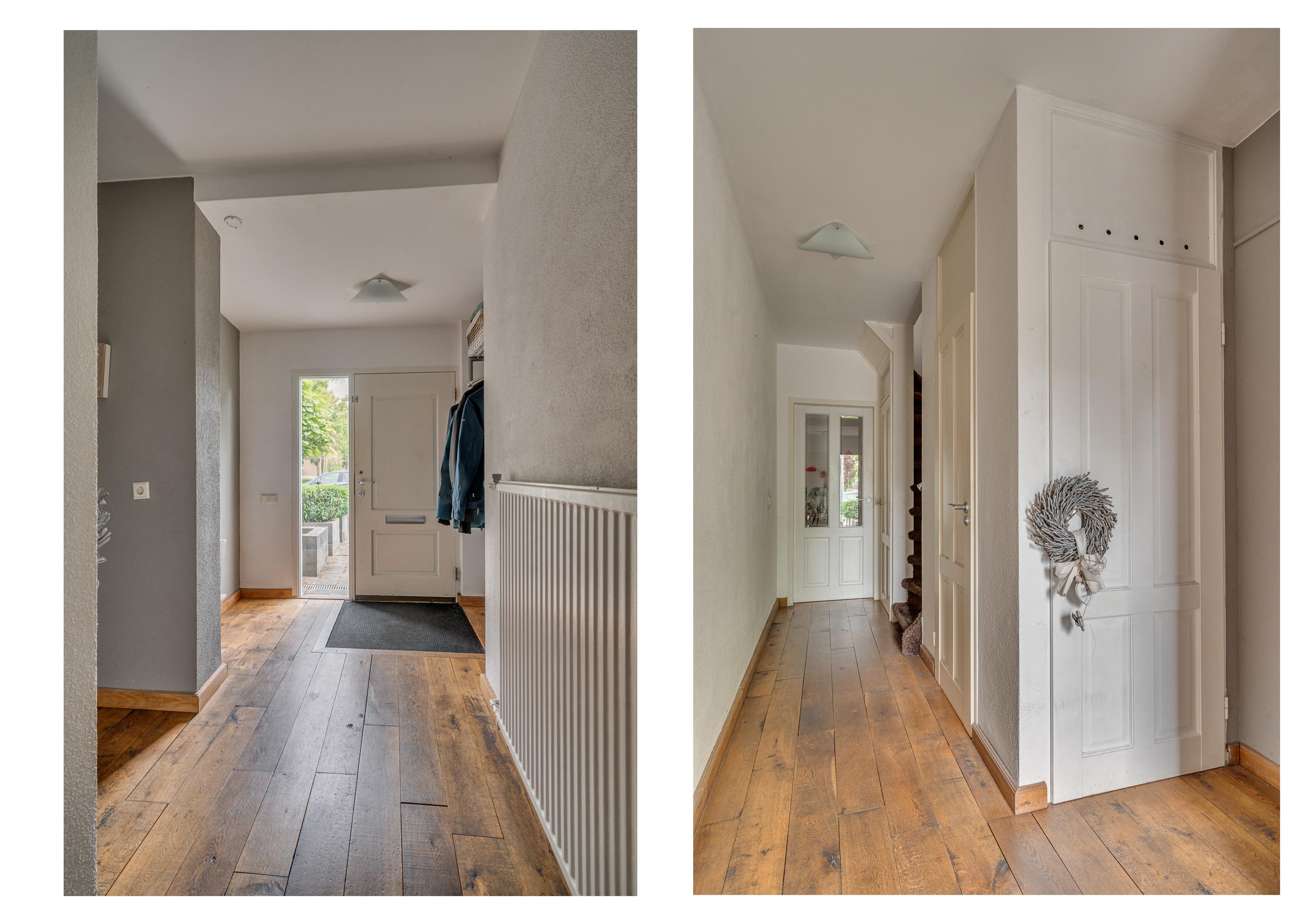 Vanuit de voortuin is de entree van de woning te bereiken. De entree/ hal met garderobe, geeft toegang tot de separate toiletruimte, meterkast, trapopgang naar de 1e verdieping en loopdeur naar de woonkamer. De toiletruimte is geheel betegeld en voorzien van een zwevend toilet. Middels een loopdeur is de woonkamer te bereiken. De zithoek met houtkachel is aan de voorzijde gelegen. Aan de achterzijde is de zithoek met keuken geplaatst. Door de ruime aanbouw is de woonkamer met aansluitend de eetkamer ca. 60m² groot. De keuken is naast de eetkamer gelegen en beschikt over een inductiekookplaat, afzuigkap, vaatwasmachine, combioven/ magnetron, koelkast en zeer veel opbergruimte. Tevens is er een loopdeur naar de bijkeuken. De gehele begane grond met uitzondering van de keuken is voorzien van een houten plankenvloer. Middels twee schuifpuien is de achtertuin te bereiken.