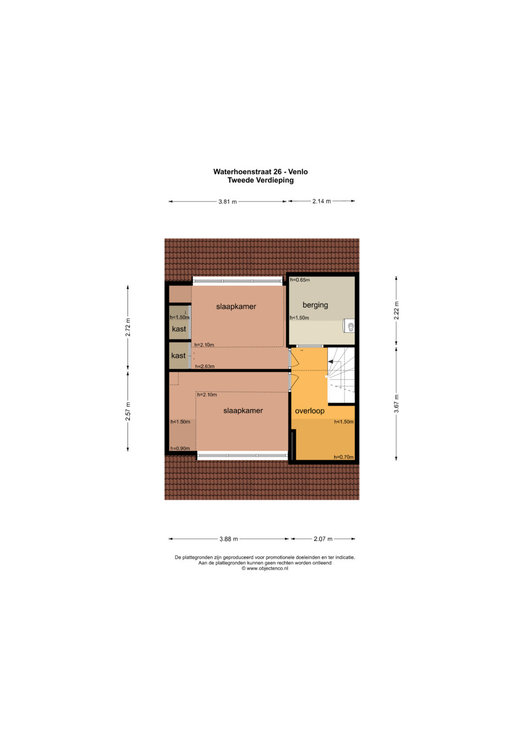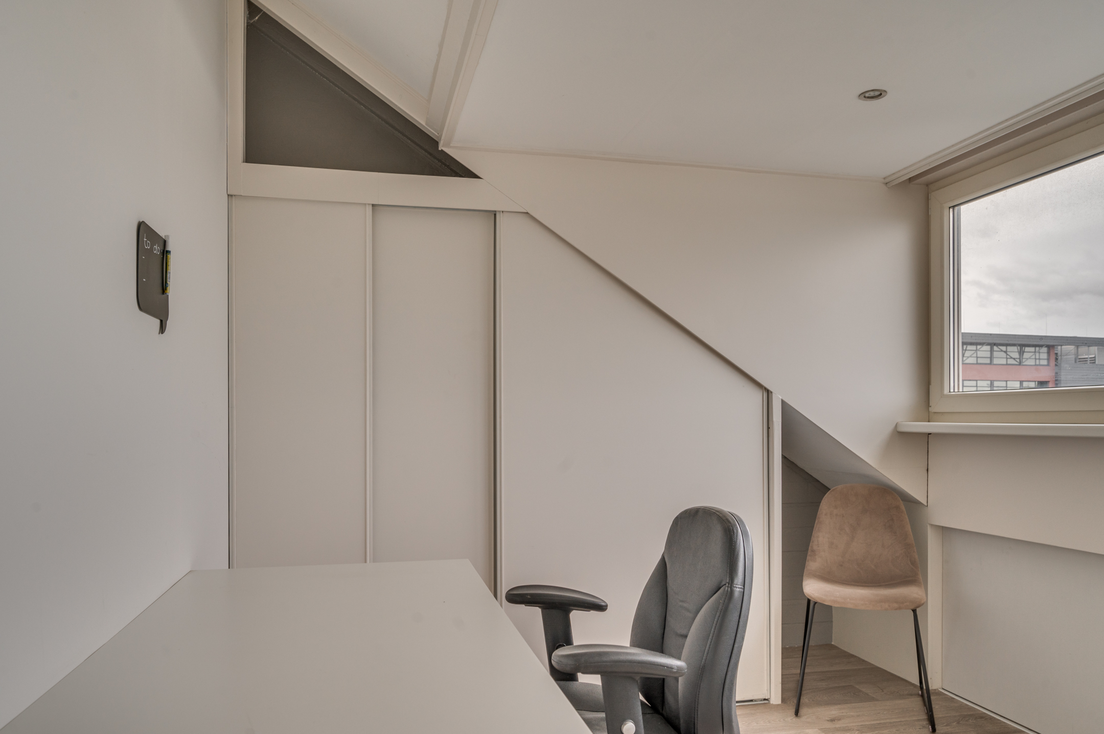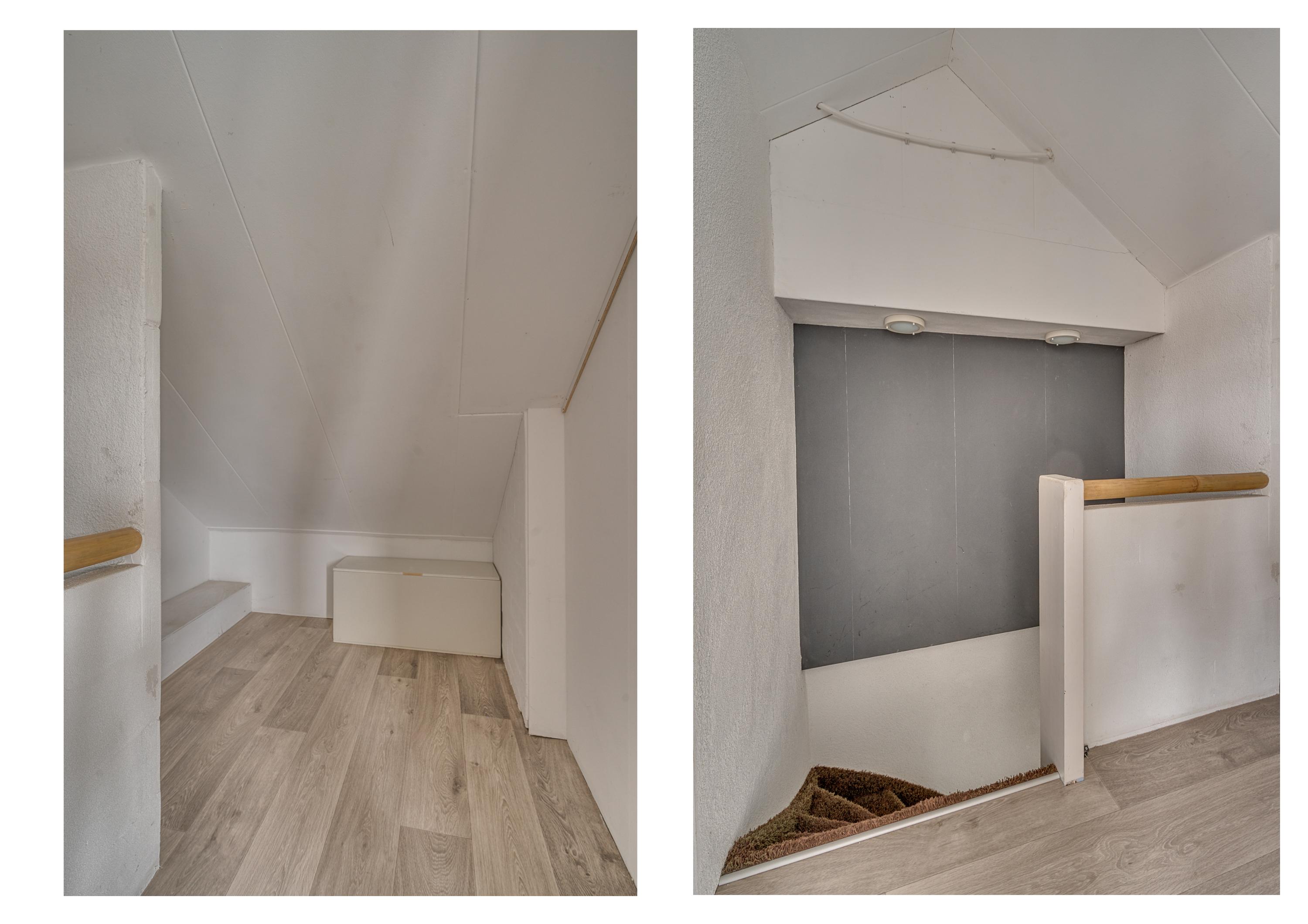 Middels een vaste trap is de overloop van de 2e verdieping te bereiken. De overloop geeft toegang tot de cv-ruimte en de 2 slaapkamers. In de CV-ruimte is de combi CV-ketel gesitueerd (Remeha 2010). De 2 slaapkamers zijn beide voorzien van een dakkapel met rolluiken en ca. 10m² en 10,5m² groot.