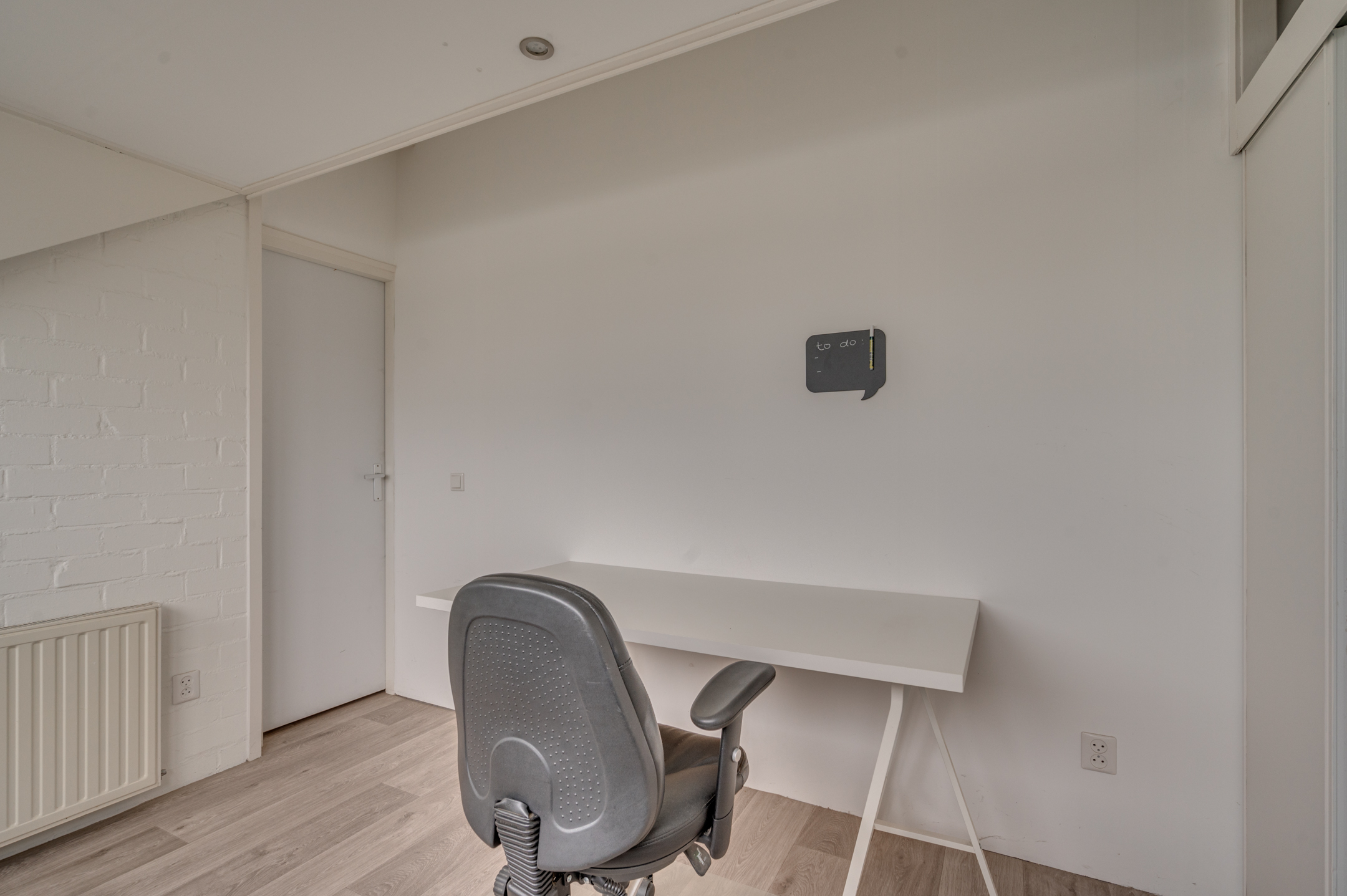 De overloop geeft toegang tot 4 slaapkamers, de badkamer en de vaste trapopgang naar de 2e verdieping. De geheel betegelde badkamer beschikt over een ligbad, douche, toilet, wastafel, designradiator en mechanische ventilatie. Verder zijn de 4 slaapkamers ca. 5,5m², 7m², 10m² en 12m² groot en hebben ze allen de beschikking over rolluiken en is de gehele verdieping voorzien van eenzelfde laminaatvloer.